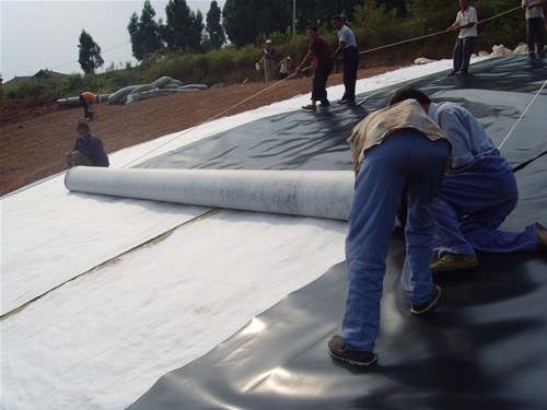 養(yǎng)殖土工膜將繼續(xù)發(fā)揮其性能,不斷的充實(shí)工程建設(shè)質(zhì)量,保障客戶朋友對(duì)土工膜的使用體驗(yàn)度,提升工程質(zhì)量。養(yǎng)殖土工膜鋪膜時(shí),一定要由上下而上鋪設(shè).膜與膜之間及膜與基面之間要壓平貼緊,但不宜將膜拉得過(guò)緊,一般要略松一點(diǎn),但不能在膜底留有氣泡。因?yàn)橥凉つけ容^薄且很輕,鋪好以后,在未鋪好保護(hù)層以前,極易被風(fēng)吹動(dòng),所以一次鋪膜面積不宜達(dá)大,較好邊鋪膜邊蓋保護(hù)層土料。